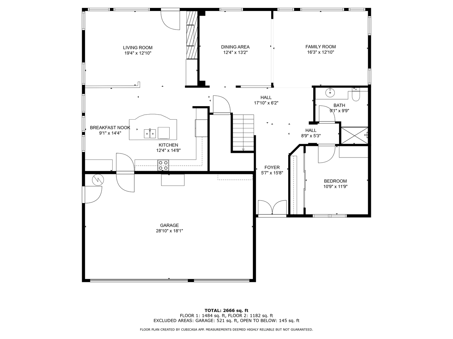 The chef’s kitchen features tile countertops, ample cabinet and counter space, pantry closets, and a center island with a sink, complemented by a cozy breakfast nook. The open-concept family room includes a fireplace, ideal for relaxing evenings.