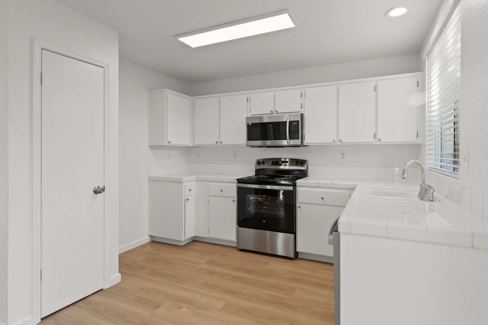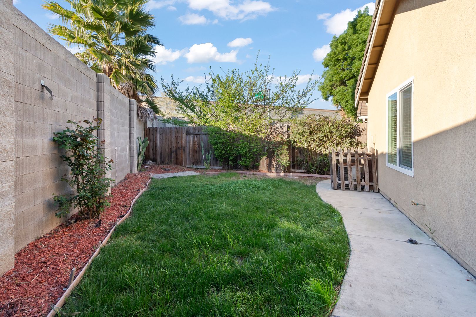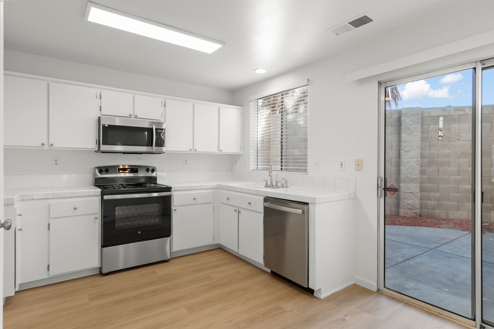 Charming renovated single story home. New interior paint and low maintenance vinyl plank flooring throughout. The entry opens to a bright living room. The kitchen offers plenty of counter space and views of the rear patio. Spacious primary suite with private bath and walk-in closet. Generous secondary bedrooms. Hall bath will have a new tub and shower installed before you move in. Spacious rear patio and grass areas in the rear and side yards.